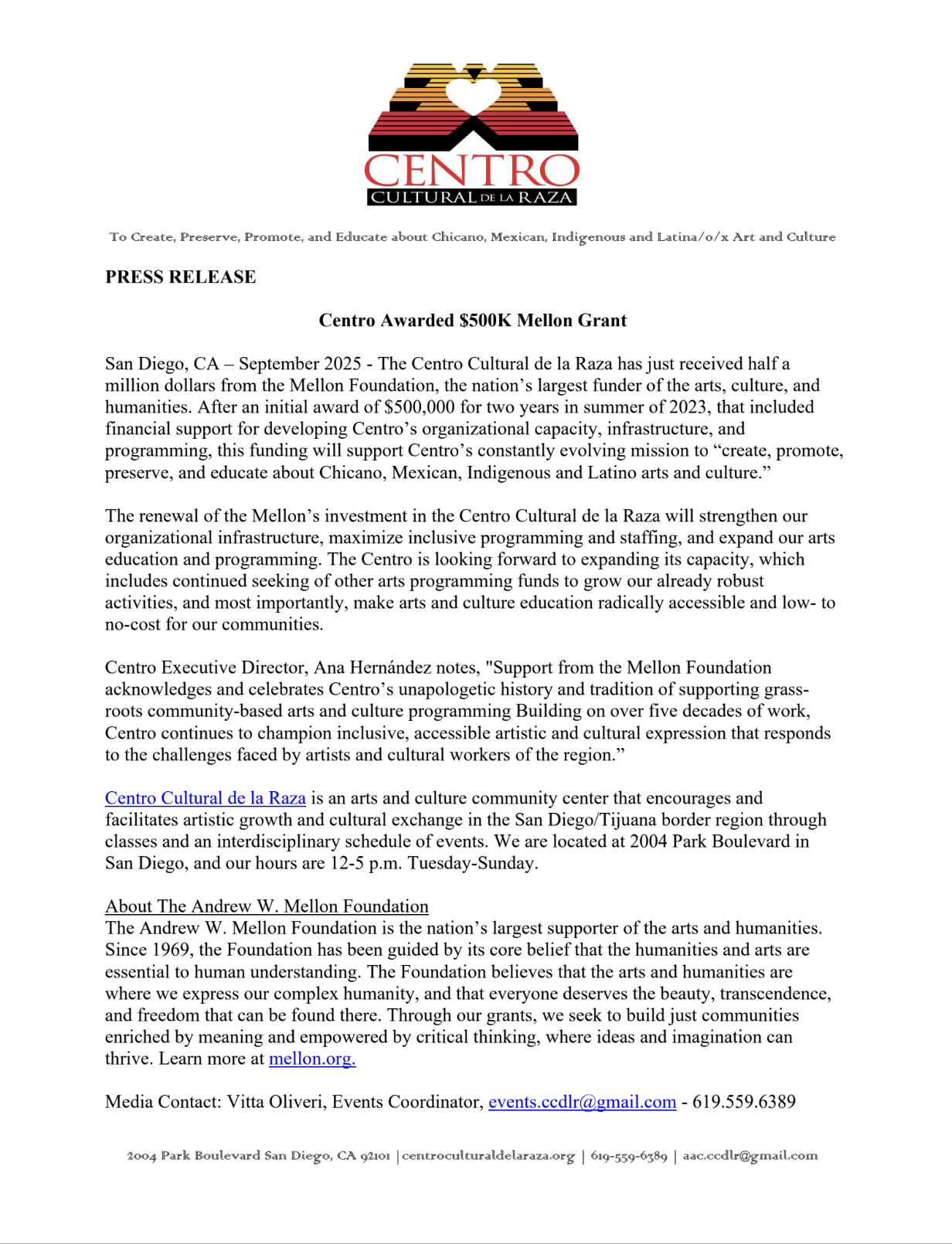CENTRO AWARDED $500K MELLON GRANT 2025